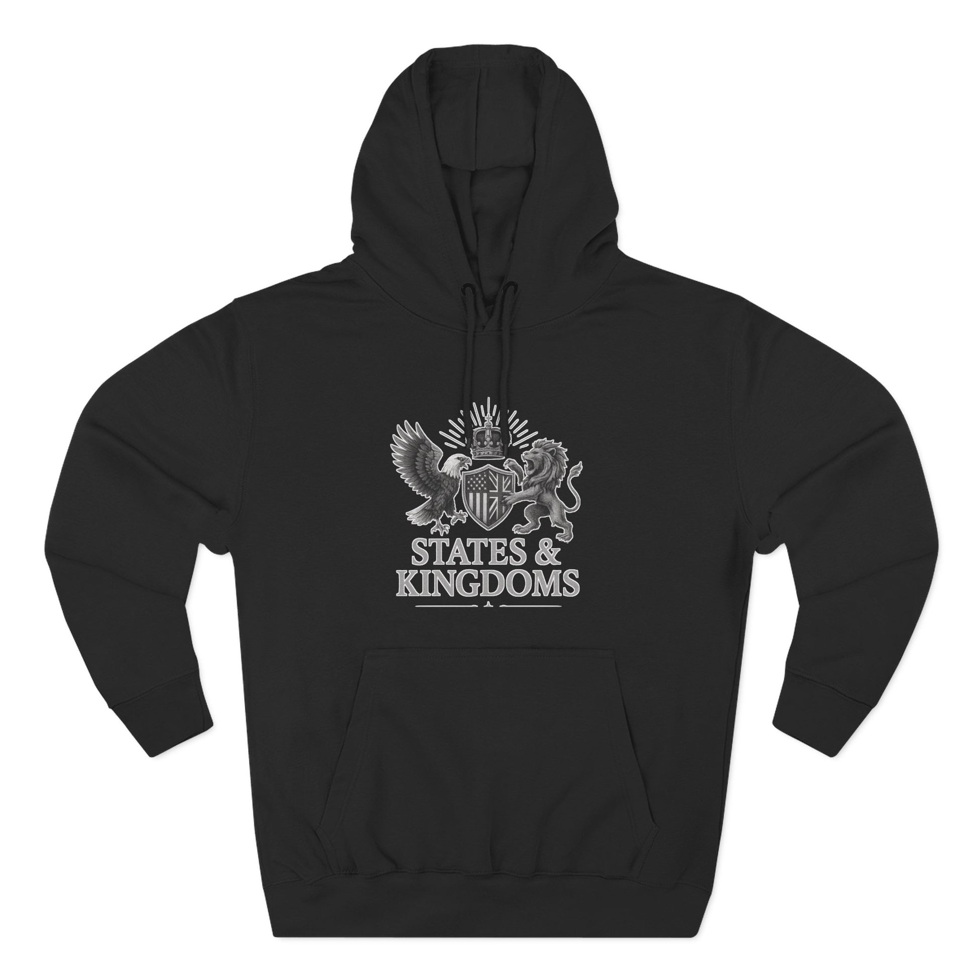 The States & Kingdoms Heritage Crest Hoodie embodies the fierce bond between American defiance and British resilience. Centered on the chest is a high-detail crest: an eagle draped in stars and stripes, a lion roaring in royal pride, both standing united over crossed swords and a battle-worn shield split by the Union Jack and American flag. Topped with a crown and forged with meaning, this emblem isn’t just art — it’s identity.
